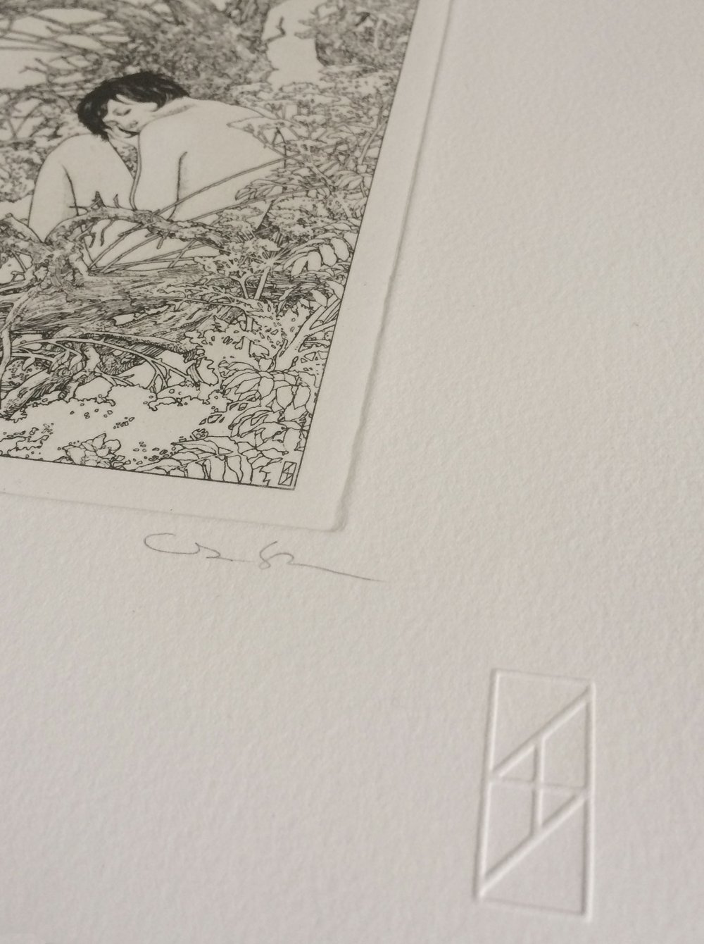 * Please note that this is a hand-made, limited-edition intaglio print. The artwork is prepared on steel or copper plates, coated in ink and passed through an etching press in order to transfer the image on to the paper. Due to the organic nature of the printing process, small imperfections and variations in tone or line can sometimes arise. This is normal and considered part of the overall aesthetic.
